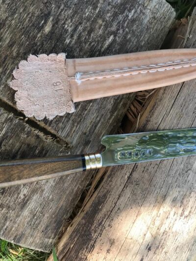 Esta pieza está fabricada mediante el método de desbaste y equipada con un botón postizo de bronce, está elaborada en acero 5160, conocido por su resistencia y durabilidad. Su diseño la hace perfecta para asadores, proporcionando un rendimiento excepcional en la preparación y corte de carnes. Ideal para uso gastronómico, ofrece un agarre cómodo y seguro ,su cabo puede ser confeccionado en materiales como madera o asta ciervo, asegurando precisión en cada movimiento. No está recomendada para uso exigente en el campo, pero es la herramienta ideal para quienes buscan calidad y fiabilidad en el arte de la parrilla.
